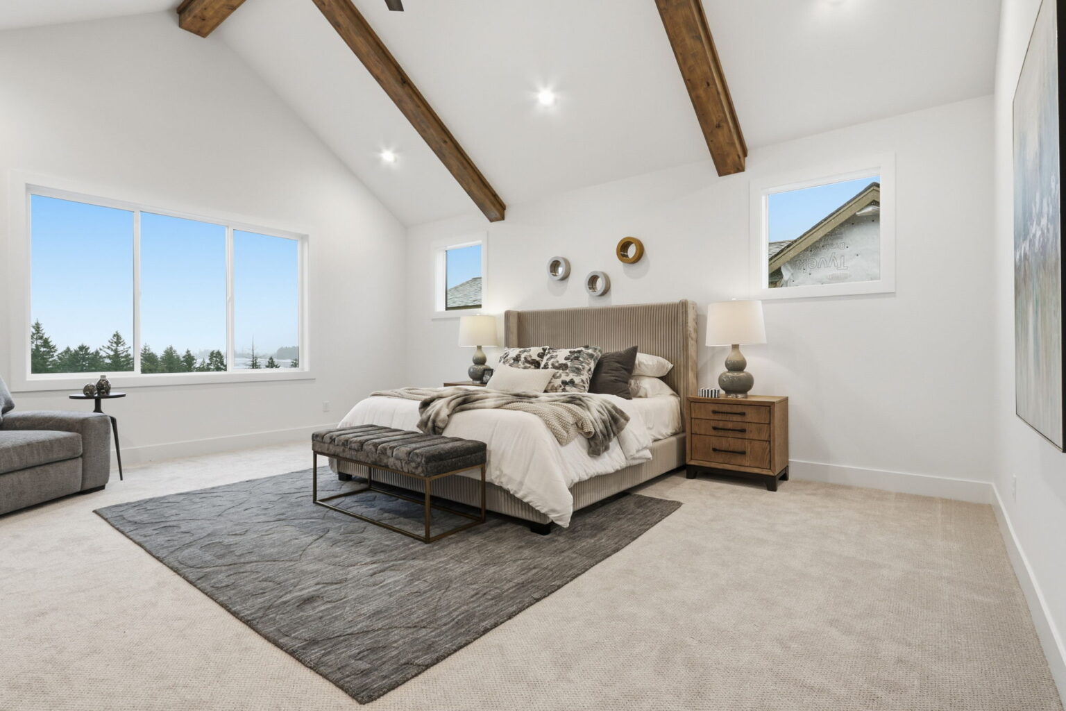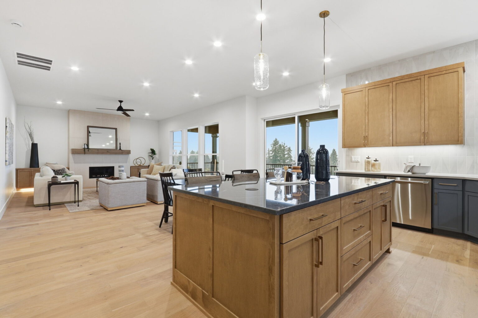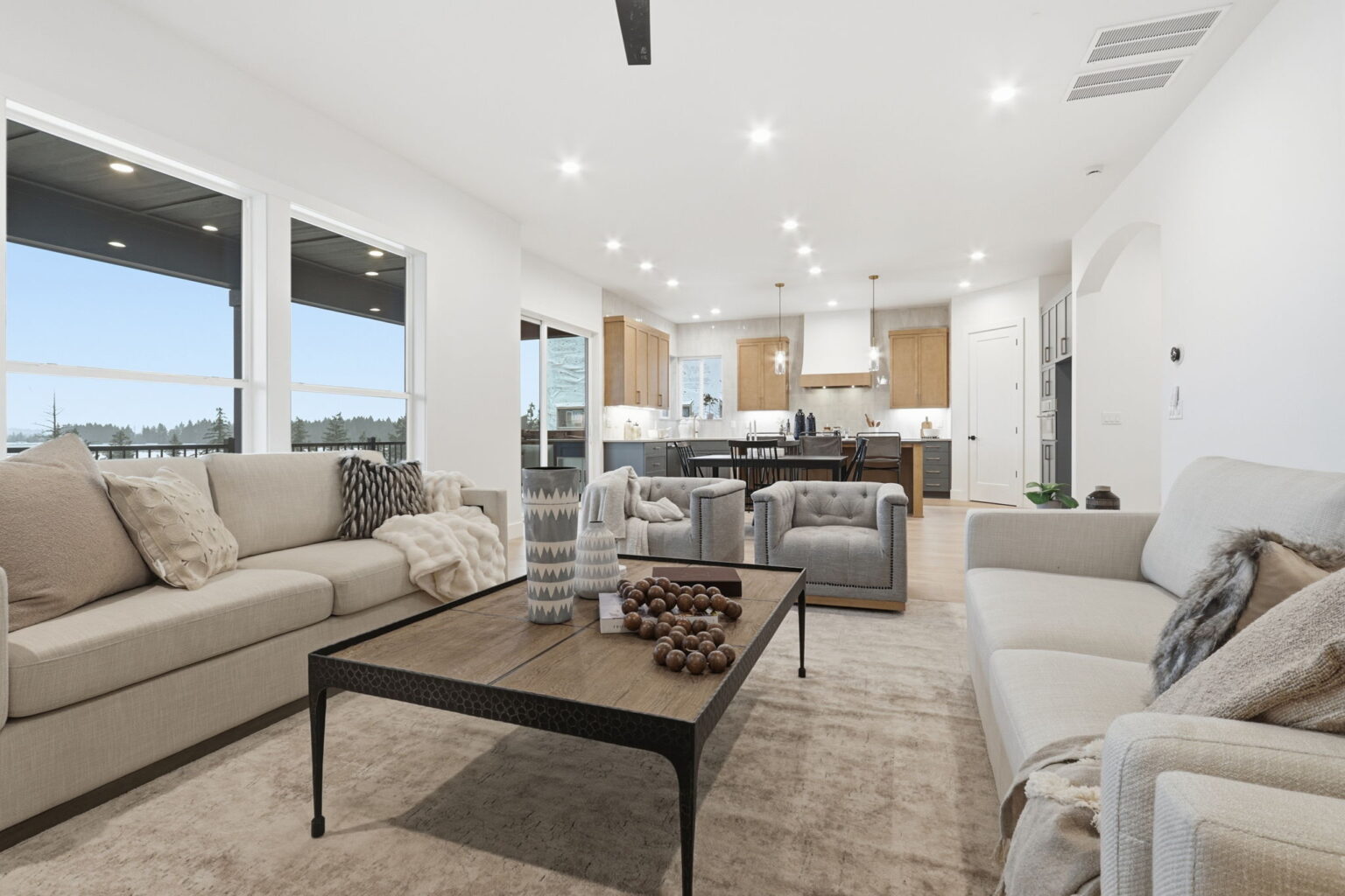 This modern custom home has room for it all, with a thoughtful and open concept floorpan that includes a primary suite and den on the main floor. The gourmet kitchen includes Themador appliances, custom cabinetry design and high end finishes. Large covered deck allow you to take in the sweeping views of this private lot. Downstairs you’ll find three additional bedrooms, two full baths and a large family room. Functionality meets modern luxury throughout this entire home including smart, high energy efficient design, including a heating/cooling system with dual thermostats. It is solar ready and has an electric vehicle charging outlet in the over sized 3 car garage.