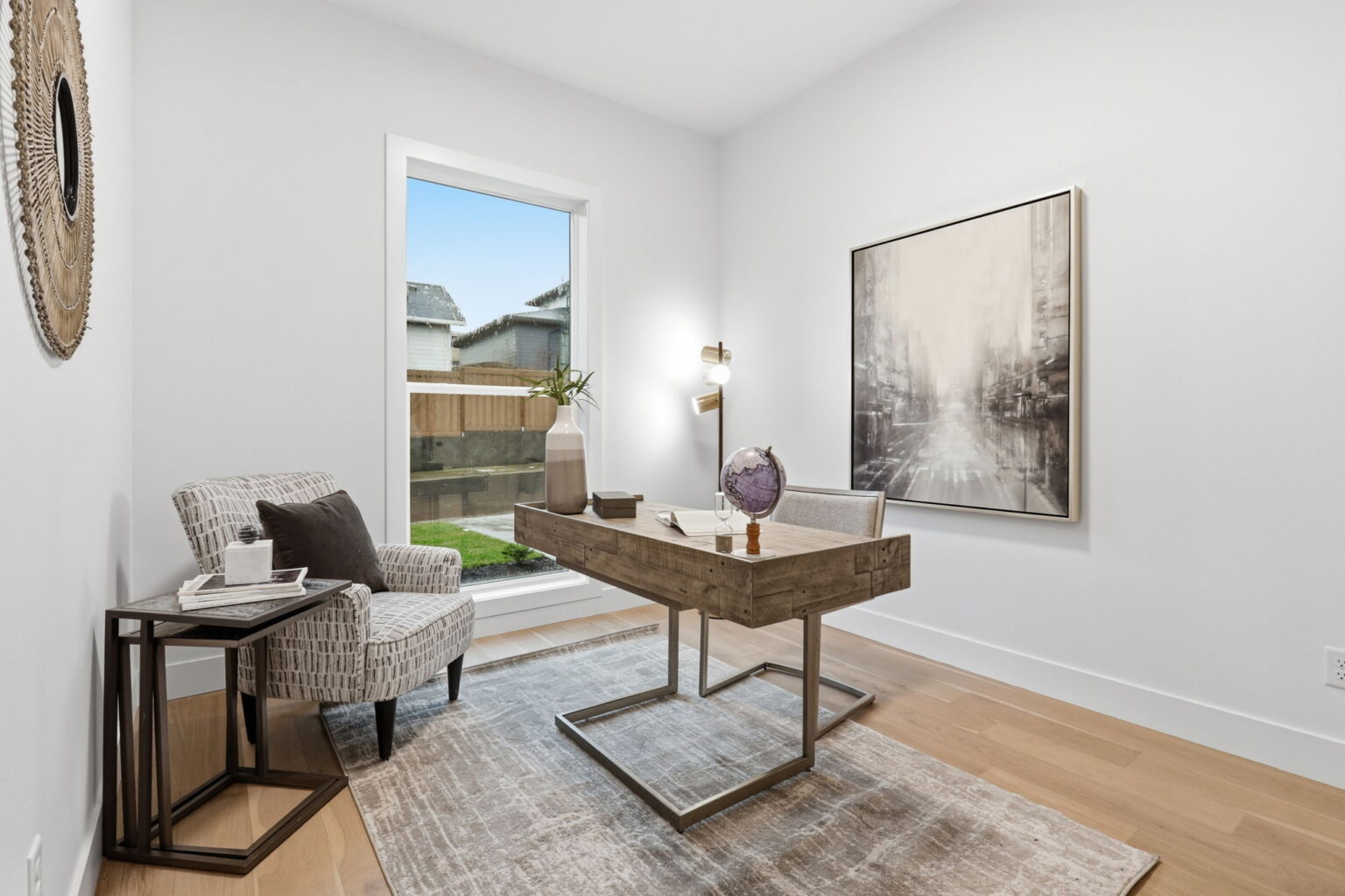 This contemporary craftsman has room for it all, with a thoughtful and open concept floorpan that includes a guest room with full bath and den on the main floor. The gourmet kitchen includes Thermador appliances, a custom two-tone cabinetry design and high end finishes that will have your guests talking. Upstairs you’ll find three bedrooms, including an absolutely dreamy owner’s suite with wet room, soaking tub, striking double vanity, make-up counter and gorgeous walk-in closet and a bonus room. Downstairs is even more room for fun featuring a game room with wet bar, built-in microwave and beverage cooler that leads right to the landscaped and irrigated yard. Functionality meets modern luxury throughout this entire home with smart high energy efficient features including multi-zone heating/cooling system with Nest thermostats on every level, recirculating tankless water heater, EV charging outlet and the home has been plumbed for future soar and central vacuum.